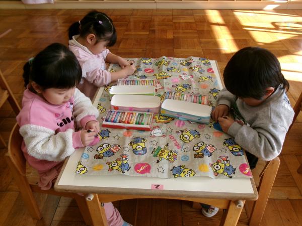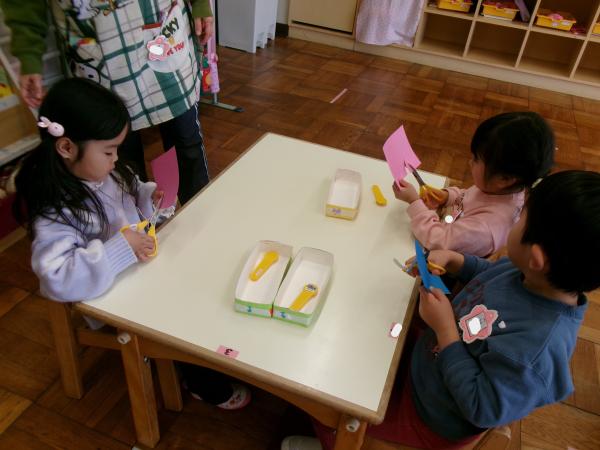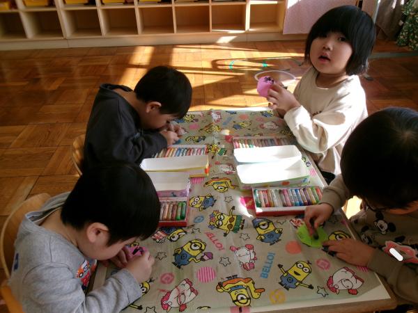 今日も元気いっぱいだったもも組さん😆💖 冬休みが明けてから、様々な製作に取り組んでいます✄ ハサミやクレヨンを使うことが少しずつ上手になってきました✨ 今日は節分に向けて鬼を作りました👹 これからも様々な製作を楽しんでいきたいと思います💕