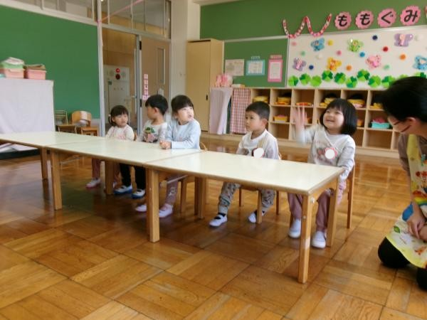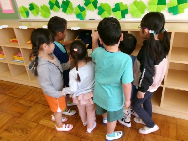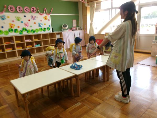 今日のもも組さんの様子です🍑 今日は、朝からきりん組さんが身支度をお手伝いに来てくれました😊 お兄さん、お姉さんが優しく教えてくれたり、遊んでくれたりしてくれたおかげで、にこにこ笑顔で嬉しそうにしていたもも組さんでした✨✨ 朝の歌、帰りの歌、チューリップの歌も少しずつ覚えてきて、歌えるようになってきました🌷 来週からは、お弁当持ち、2時降園になります🚌 お弁当のご用意、よろしくお願いいたします😌🍙 今週は、初めてだらけのことも頑張ったもも組さん💮 ゆっくり休んでまた来週遊ぼうね💕待ってるよー💕