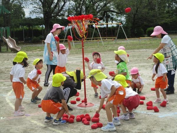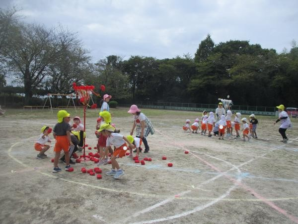 そして、年少さんと一緒に玉入れの練習もしました😁