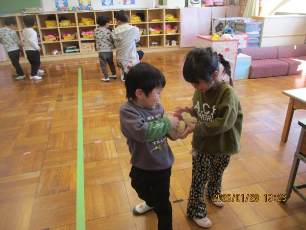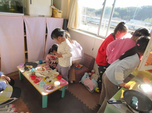 お部屋では、ままごとや編み物、製作遊びをしました🎵