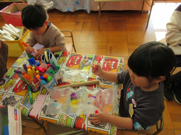 製作遊びでは、好きなものを様々な材料を使って作り、作ったもので楽しそうに遊んでいましたよ💗