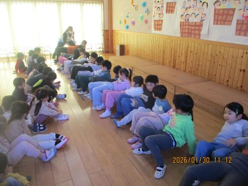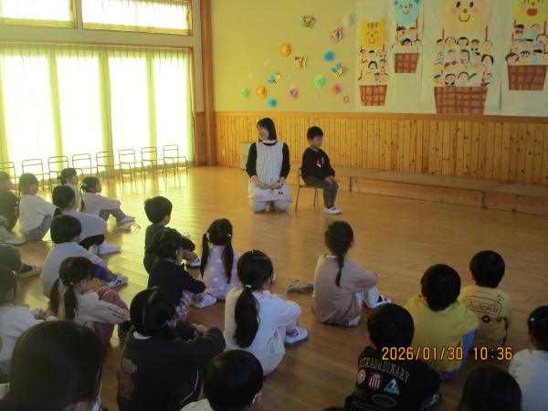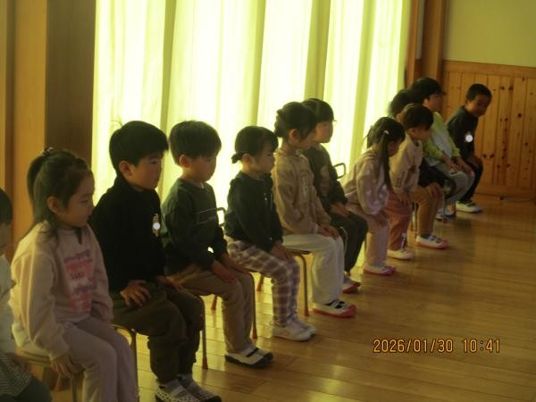 なかよしホールに集まって3学年合同で保健指導を行いました😊今回のテーマは姿勢です💪✨もも組さんは昨日に引き続きの保健指導となりました🌞