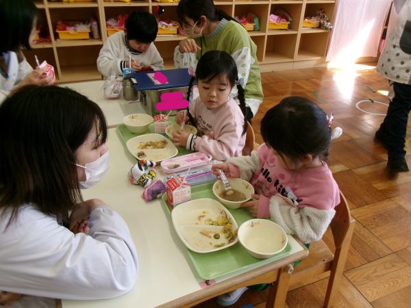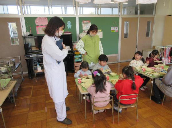 本日は給食センターから栄養士の方が来てくださり、給食の様子を見てもらいました😄 配膳の様子や食べている様子を見てもらったり、栄養についての話を聞いたりしました💕 栄養士さんに見てもらうことで、いつもよりも頑張って食べようとする姿も見られましたよ🥰 今後も、給食センターで給食を作ってくれている方達に感謝の気持ちをもって食べていけるようにしていきたいと思います💗
