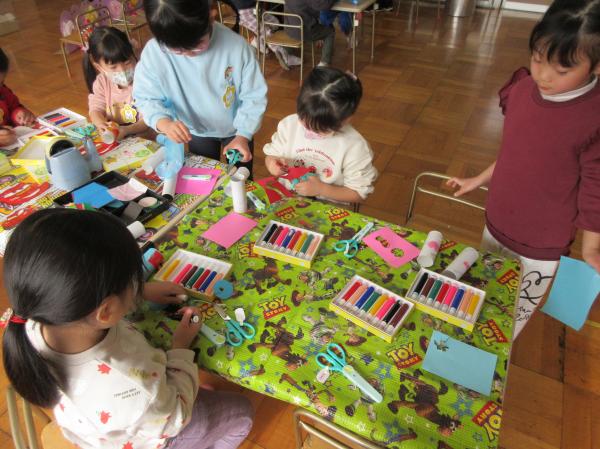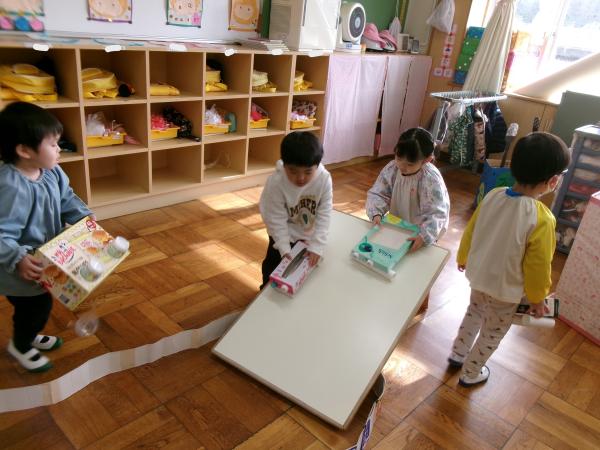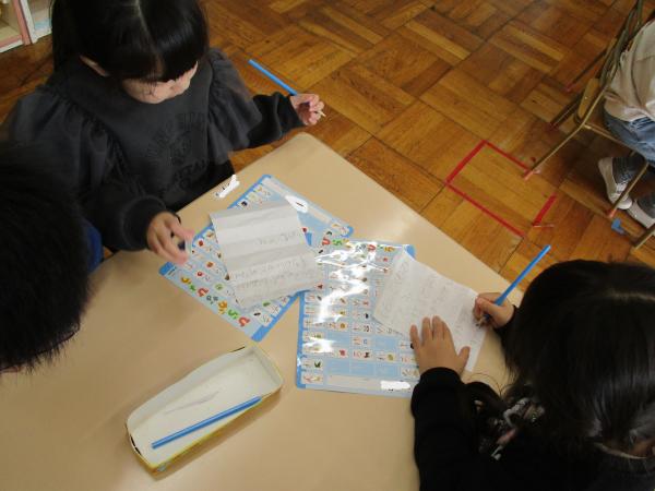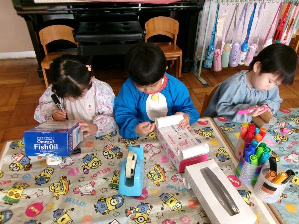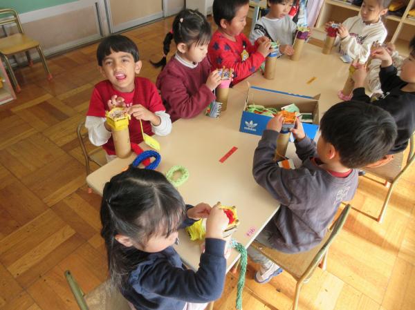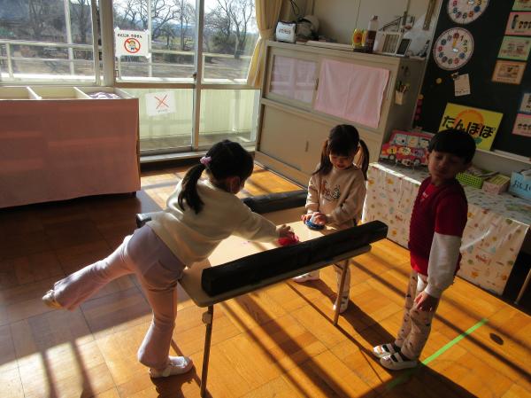 寒い日が続いていますが、今日もこども達はとても元気に遊んでいました😄 室内ではステージやお店屋さんごっこ、編み物、空き箱製作、こま回し、あやとりなどを通して、友達同士で教えあったり遊び方を考えたりと、こども同士のかかわりの深さを感じました✨ 戸外では今日も、もちろんマラソンからスタート‼縄跳びや鉄棒などの運動遊びや自由遊びも楽しみました😆🎵 年長さんは文字が上手に書けるようになり、製作の中で頑張る姿が見られました✏