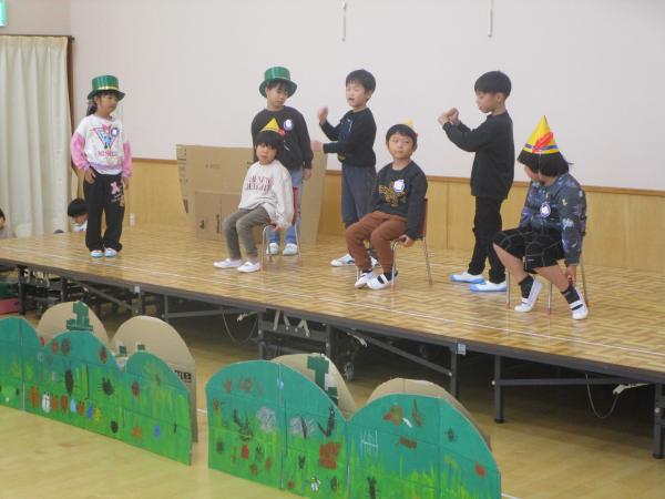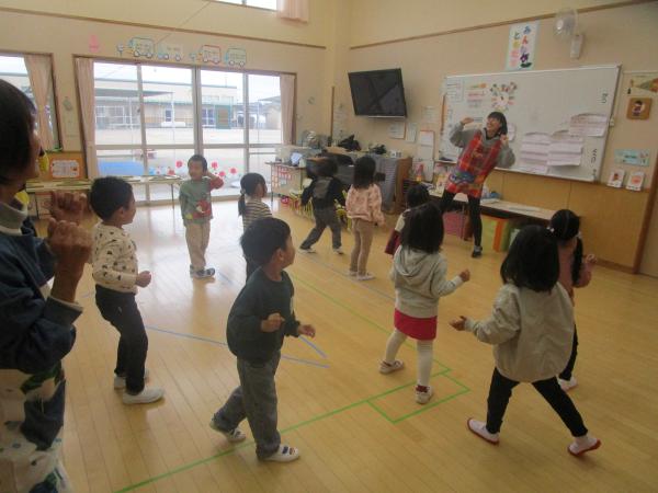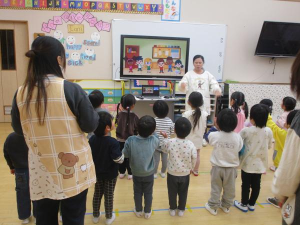 三連休明けの一日の様子です。今日は、欠席者が多くみられました。インフルエンザが流行り始めました。手洗い・うがい等をこまめに行い、感染予防をお願いします。 雨のため、みんなで体操・クリーンデーは中止しました。体操はクラスごとに行いました。室内での表現遊び、英語教室、製作などを行いました。