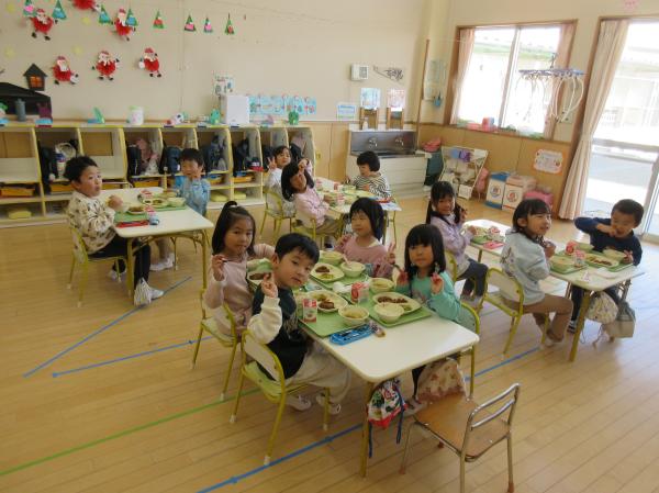 たくさん遊んだ後は「お腹すいた~!」と給食を楽しみに、今日もモリモリ食べていましたよ🍚💕