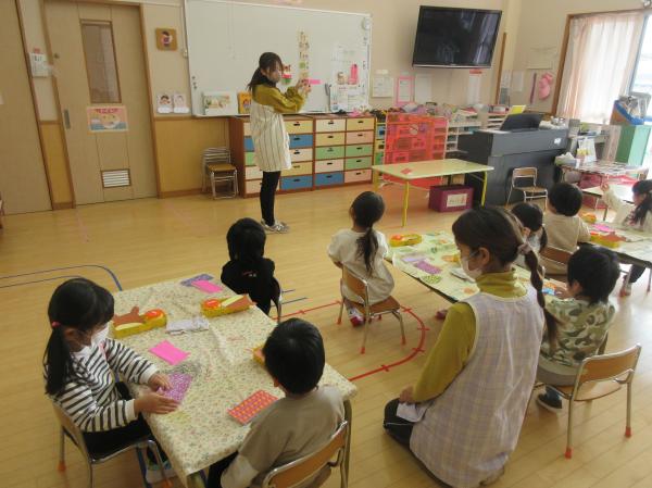 毎日、各クラスで様々な活動をして過ごしています! 年長組は、製作や生活発表会に向けての練習に励んでいます♪年中組は、2クラスで劇の見せ合いをしました👀年少組は、1月の壁面の製作や集団遊び(しっぽ取り)をして体を動かしていました😄✨ 12月は年長の生活発表会、もちつき会、クリスマス会、ハンドベルコンサートなどの行事がたくさんあります😉💕風邪症状での欠席者も増えてきているので、予防をしっかりして楽しく行事に参加できるようにしましょう😊