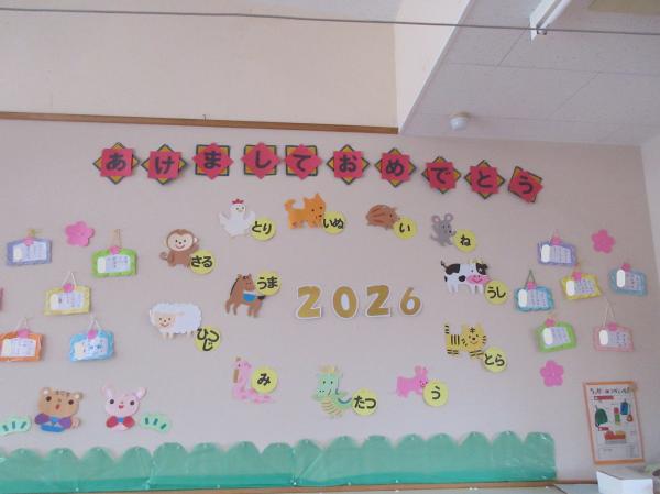 あけましておめでとうございます。本年もどうぞよろしくお願いいたします。 明日から、幼稚園が始まります!先生たちは、研修や話し合い、保育準備などをしました。壁面や遊びのコーナーが『お正月』になっています♪ 明日みんなに会えることを楽しみにしています💖