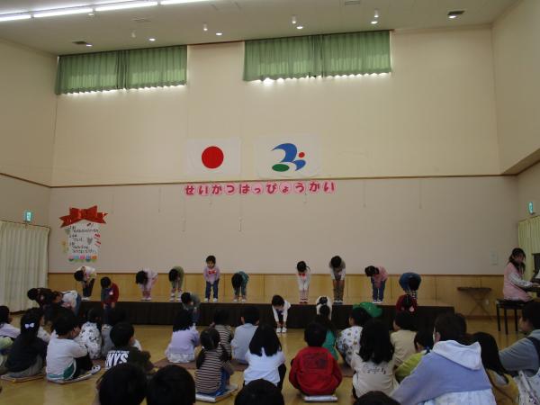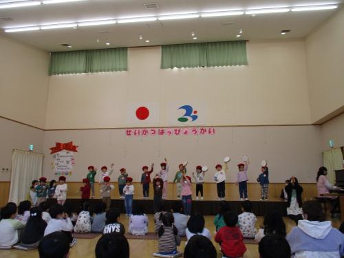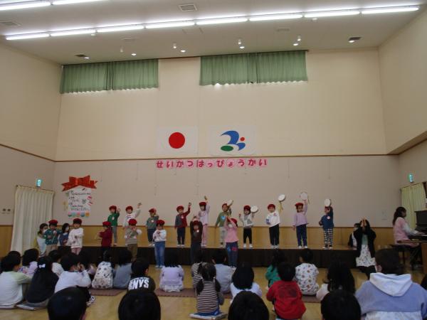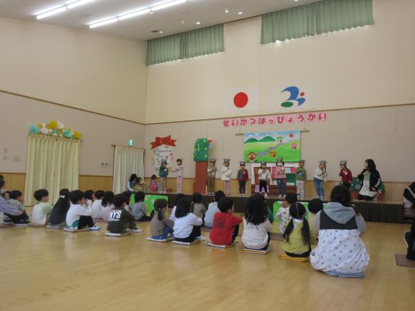 明日は年少さんの生活発表会です。今日は最後の練習をし、年中・年長さんが見に来てくれました✨ これまで練習を重ねて頑張った年少さんは、自信をもって劇や合奏、歌の発表ができるようになりました。明日は、今までの練習の成果をお家の方に見てもらいたいと思います🎵たくさんの応援、よろしくお願いします!
