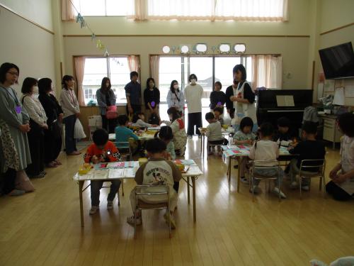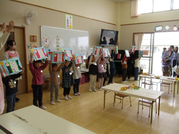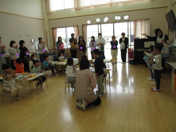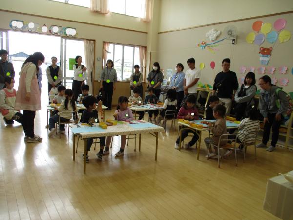 先生の話をよく聞いて、とても丁寧に作る姿が見られました🎵出来上がったこいのぼりをお家の人に観てもらい、拍手をしてもらうと、とても嬉しそうな子どもたちでした💕😊
