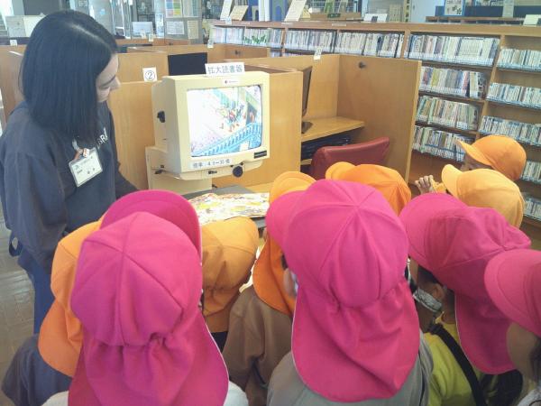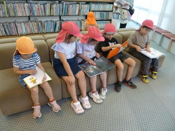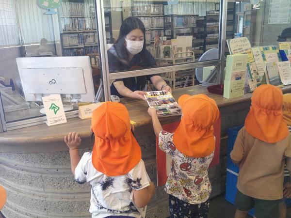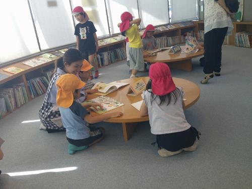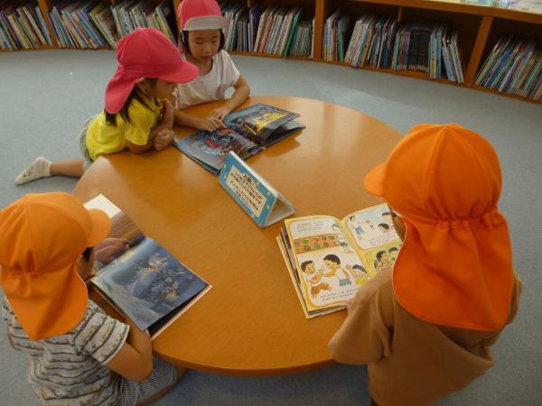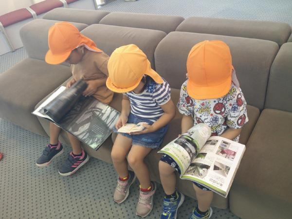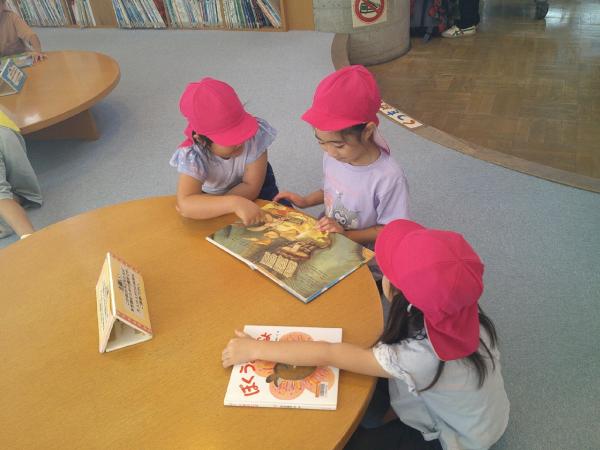 4・5歳児で図書館へ行ってきました。楽しみにしていたようで、朝から「バスくるかな?」とワクワクしている様子。みんなにお見送りしてもらいながらバスに乗り、いざ出発です✨図書館では、館内を案内してもらったり、機械の使い方などを説明してもらったりしました👀自由時間は、絵本コーナーでそれぞれ好きな絵本を楽しみました。最後に貸出カウンターへ自分のお気に入りを1冊持っていって、借りてきました📖借りてきた本は、保育所のみんなで楽しみたいと思います☆たくさんの絵本にふれてとても嬉しかったようで、「また行きたいな」という声も聞こえました😊ぜひご家族でも訪れてみてください😌✨