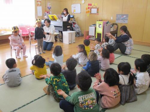 今日は七夕なので、誕生会と七夕集会を行いました🌠今月の誕生児は1名。みんなから色々な質問をして、好きなものなどをたくさん教えてもらいました😊 その後は、七夕についてのペープサートを見たり短冊の紹介を聞いたりしました。最後のクイズも楽しみながら参加していました!みんなのお願い事もお空にと届くといいですね🌌お家でもぜひ、七夕について話をしてみてくださいね♪