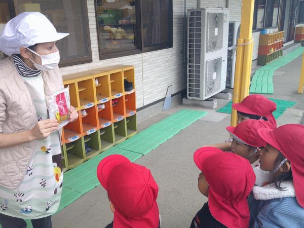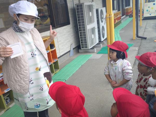 交通安全教室があり、きりん組、ぞう組が参加しました。信号の渡り方や交通ルールについて劇や紙芝居で教えてもらいました🚦みんな真剣に話を聞いていましたよ。ご家庭でも交通ルールや今日の教室についてお話してみてください。 そして、母の会の皆さんからチューリップの球根をいただきました🌷本日持ち帰ります。