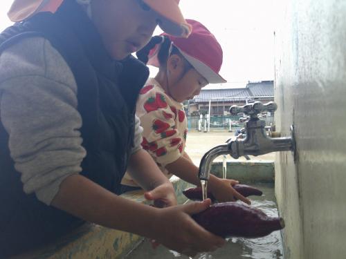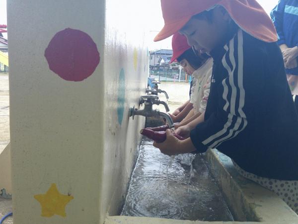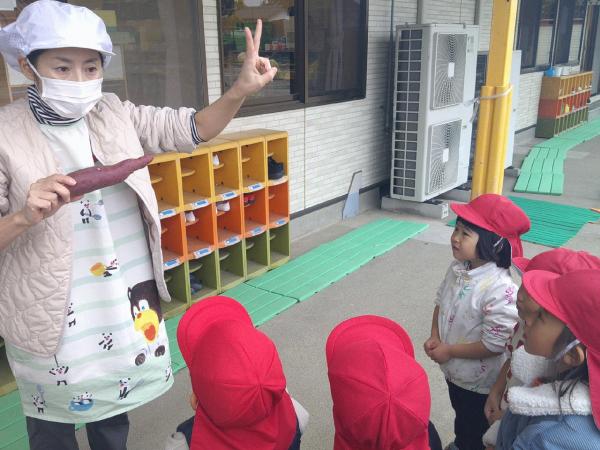 今日は県民の日ということで、茨城県の特産品にちなんだ献立です🍴今日の給食に出る、白菜や納豆などの生産数国内NO.1の食材を見せてもらいました。サツマイモはというと・・・惜しくもNo.2!でも、干しいもという食べ物に変身すると〜!なんとNo.1になるそうです✨ 今日のおやつにサツマイモを使用するので、みんなでキレイに洗いました😊「ゴツゴツしてる」「キレイになってきた」と一生懸命お手伝いをしてくれて、「おやつが楽しみだな♪」と待ち遠しい様子の子どもたちでした☆