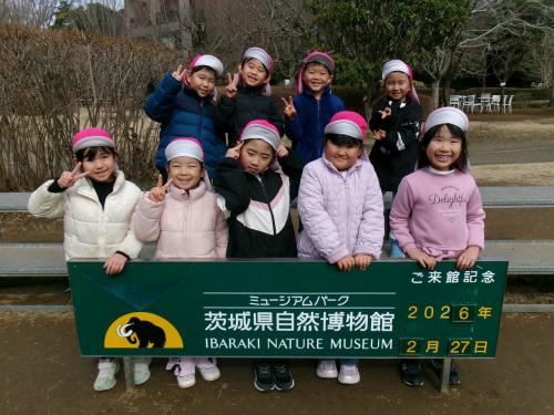 茨城自然博物館へ遠足に行きました。てるてる坊主を作ってお願いしたのが届いたようで、天気がよくトランポリンでたくさん遊ぶことができました。何度も跳んで走って大満足な様子でした😊お弁当も外で食べることができ、「美味しい」と言いながらとっても嬉しそうに食べていました。館内見学では、動く恐竜に驚いたり、じっくりと展示を見たりして楽しみました。帰りのバスではみんな夢の中😪「博物館ずっといたいな」という声が聞こえるほど、大満足な1日になったようです。