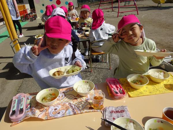 今週は天気が良い日が多かったので、散歩に行ったりたっぷりと戸外遊びを楽しみました✨ 散歩では、道中の自動販売機で点字を見つけたり、値段の表示を読んだりして月刊本に載っていた内容を実際に見て楽しみました。「あたたかいのも冷たいのも買えるんだ!」という発見があった子もいました。精米所の横を通った際には精米機の話をしました。実際に精米体験をしたので、興味深く話をきいていましたよ👂 今日はテラスで給食を食べました!念願のテラスランチを楽しんでいましたよ😊
