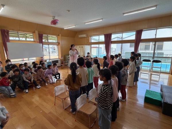今日は、全クラスそろってのみんなで体操🤸春の暖かさを感じながら、みんなで元気いっぱいからだを動かして体操しました⭐ そして、その後は修了式リハーサル🌸 うさぎ組、ぱんだ組、りす組の先生が見学する前で、少し緊張している様子のぞう組さんでしたが、今までの練習を発揮し頑張っていました😊