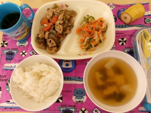 今日の給食は、 🥢ご飯 🥢炒り鶏 🥢もやしのごま酢和え 🥢かぶのスープ 🥢バナナ 🍌 でした。 炒り鶏は、鶏肉とにんじん🥕やごぼうなどの野菜が入った煮物でした。子どもたちから「鶏肉が入っている〜 おいしそう!」「グリンピースだ。苦手だな👀」の声が上がりましたが、おいしそうに食べていました。