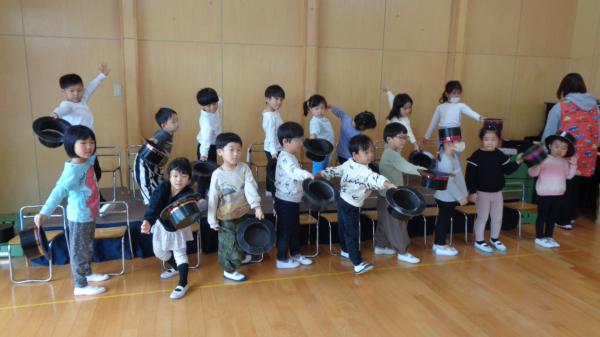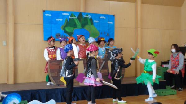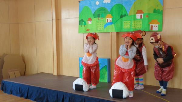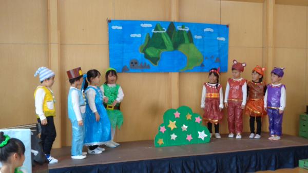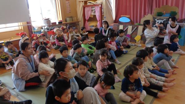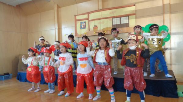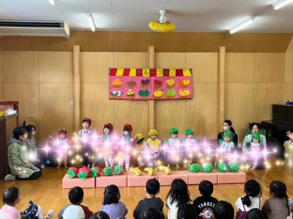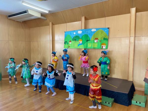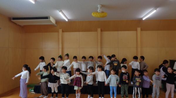 全クラスで生活発表会の再現遊びをしました🤗✨劇は、各クラス役を入れかえて参加しました。 いつもと違う雰囲気を楽しみながら、伸び伸びと楽しんでいた子どもたち。役が変わっても、台詞や動きをよく覚えていて驚きました😆! また、他のクラスの演目にも自由に参加し、笑顔で歌ったり踊ったりする姿が見られました🌈今日は休みの子も多かったので、また機会を設けて再現遊びを楽しみたい思います🎵
