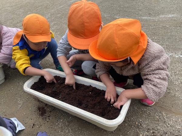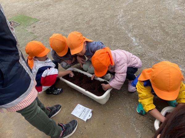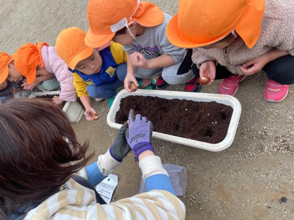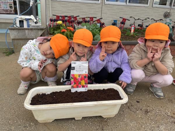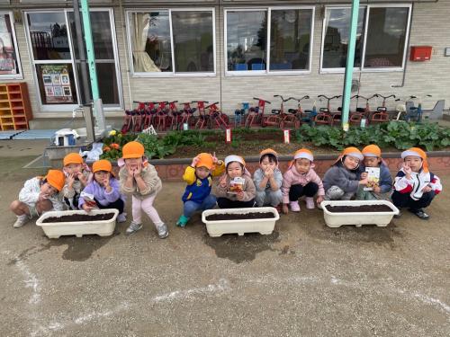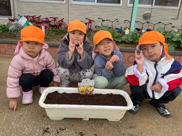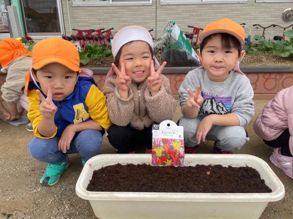うさぎ組で、チューリップの球根を植えました🌷「玉ねぎみたい🧅」「何色が咲くかな?」といろいろな会話が聞こえてきました✨きれいな花が咲くのは、みんながぱんだ組になる頃🐼それまで水やりをしながら大切に育てていきたいと思います♡