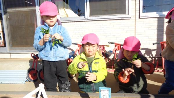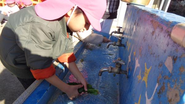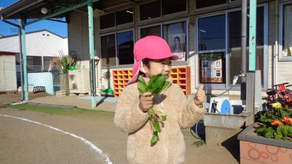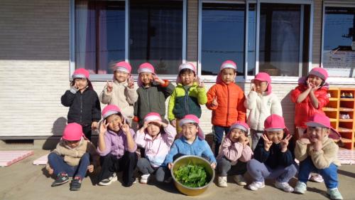 みんなで育てているほうれん草が大きくなってきたので、初めての収穫を行いました🌞大きめのものを選び、根本から慎重に抜きました🌈✨優しく土を落としたり洗ったりしてから給食先生の元へ😊 今日の給食のスープに入れてもらい、ほうれん草を見つけると「入ってたよ!」と嬉しそうな子ども達でした🤗大根や人参の収穫ができる日も待ち遠しいですね✨