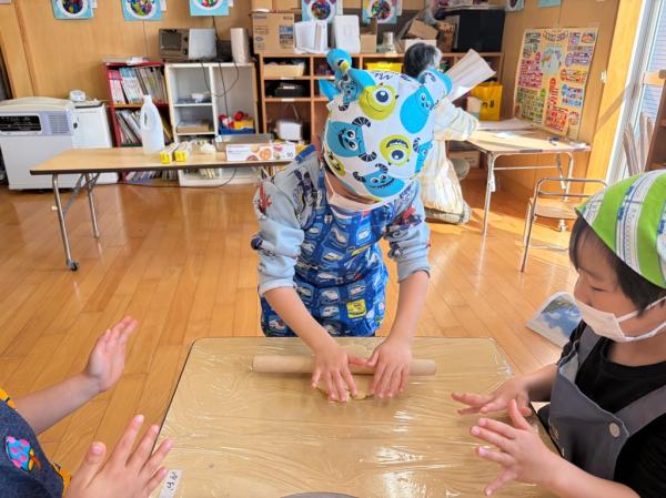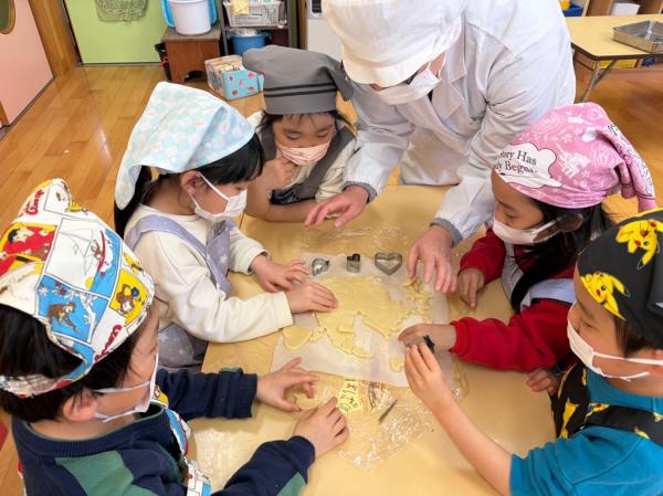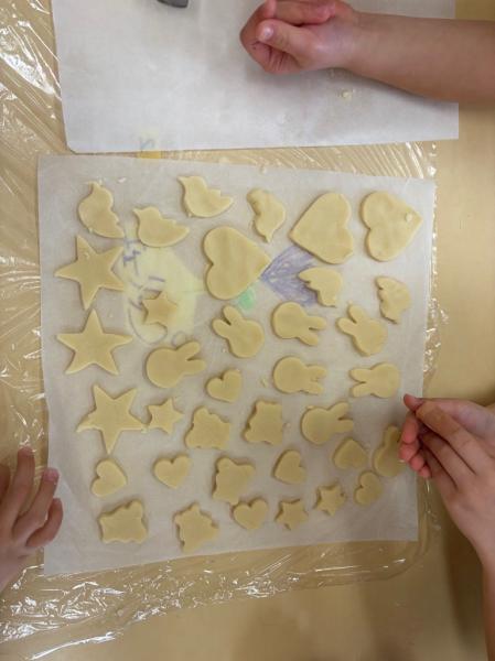 その後は、型抜きに挑戦✨✨様々な型抜きを使いながら、楽しそうに生地を抜いていきました。焼き上がりを心待ちにし、あま〜い匂いがしてくると・・・みんなウキウキで食べていました😋