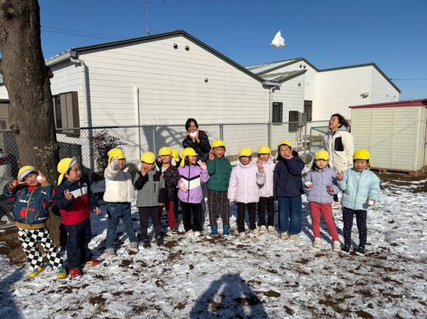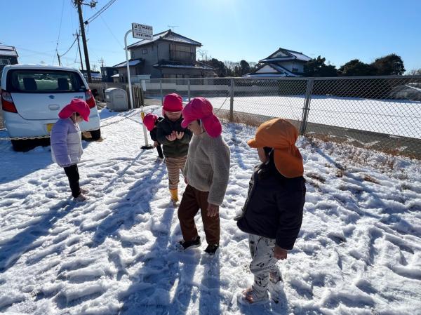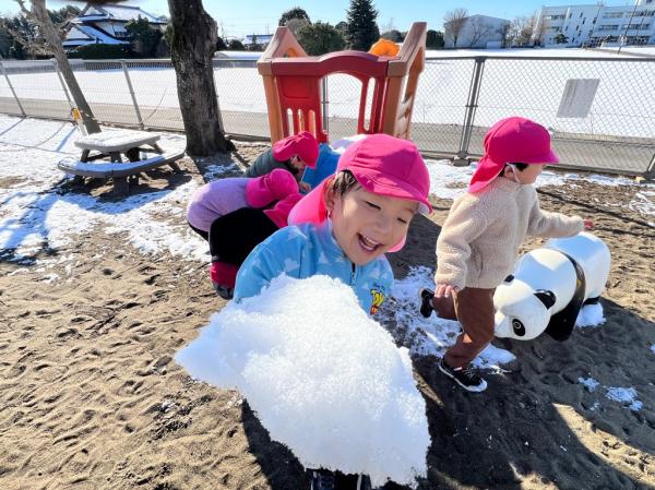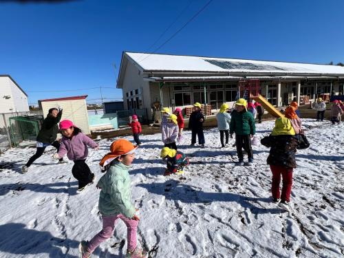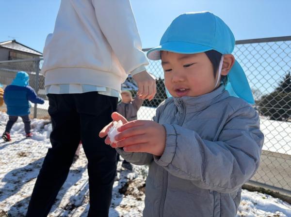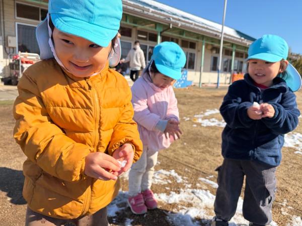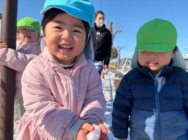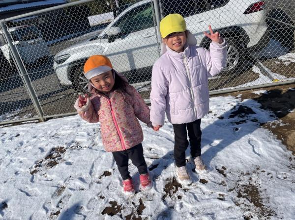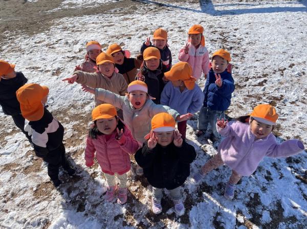 週末に降った雪が保育所の庭にも積もりました😊🌈子どもたちは目を輝かせて大喜び!雪に触れたり雪合戦をしたりして楽しんでいました🎵「また、雪降らないかなぁ〜🤔✨」と、楽しみにしている様子でした💓