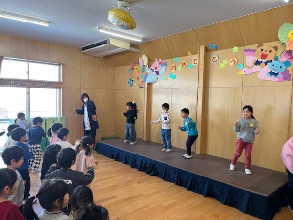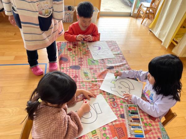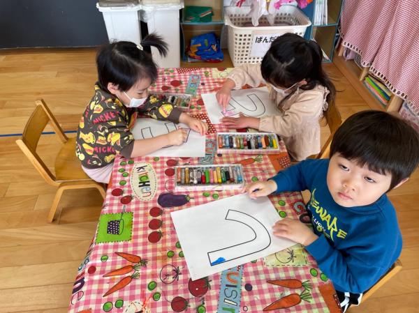 今日は小学校周辺を探索🔍畑にあった冬野菜でクイズを出すと、「大根」「白菜」と元気に答えてくれました✨他にもみかんや椿を見つけて喜んでいるうさぎ組でした🐰 散歩のあとは、おわかれ会に向けた制作🖍制作したものを使うタイミングを知らせると、みんな集中して取り組んでいました!!毎月クレヨンを使った制作をしてきたので、塗り絵がとっても上手になりましたよ😊ぞう組さんには内緒の制作と遊戯の特訓はまだまだ続きます🌈