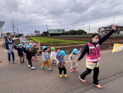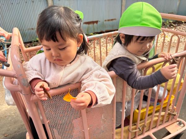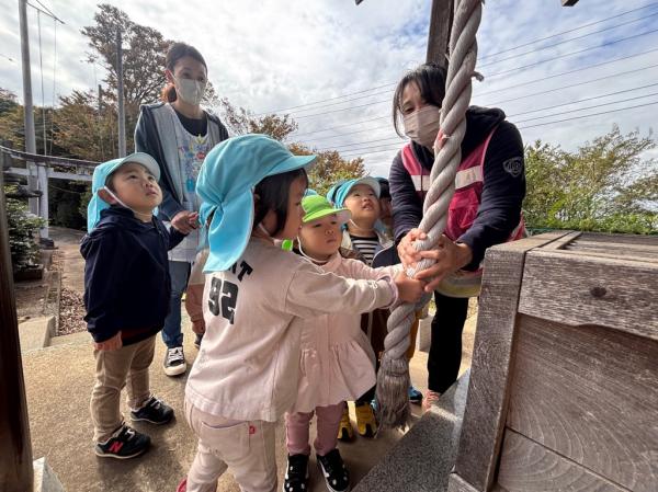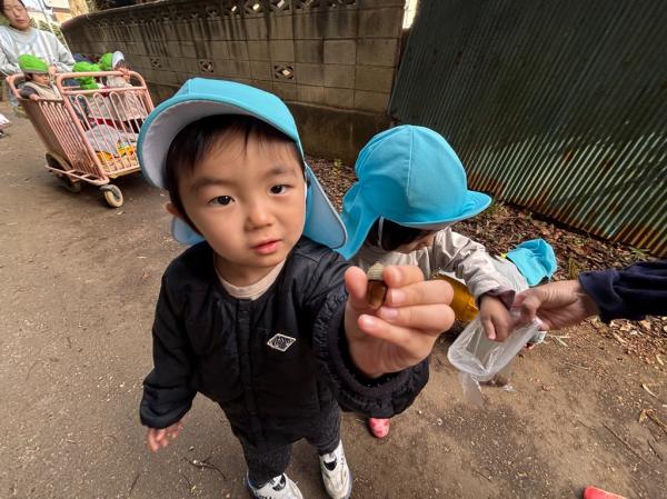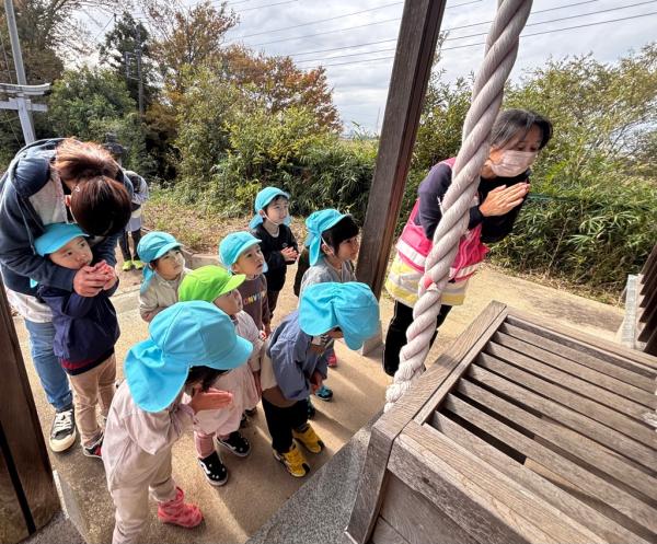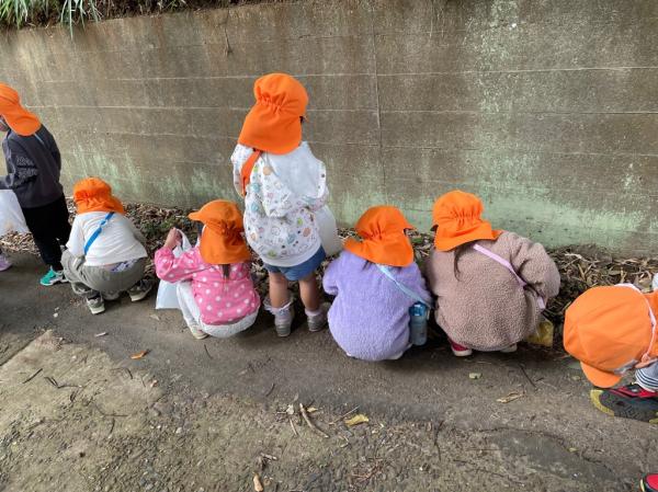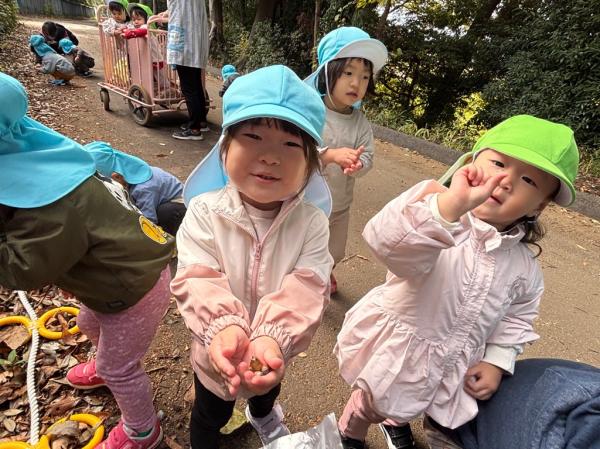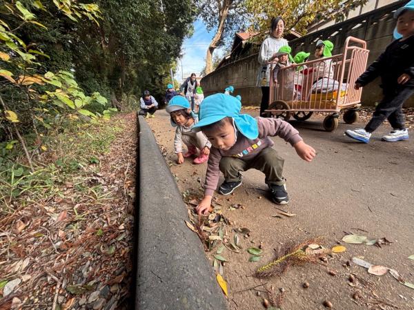 今日は近くの神社までみんなでお散歩に行ってきました🧑🤝🧑♫道路を渡るときは、右左を見て車が来ないか確認して歩こうね🚗⚠と約束ごとを確認すると、しっかり左右を確認し、手を上げて道路を渡る姿が見られました🖐✨目的地の神社に着くと『これからもみんなで仲良く遊べますように』とお願いしてきました☆(^人^)道中では、どんぐりがたくさん落ちていました!「どんぐりだ✨」と目を輝かせる子どもたち👀✨夢中でどんぐり拾いを楽しみました♫また散歩に行きたいと思います🍀