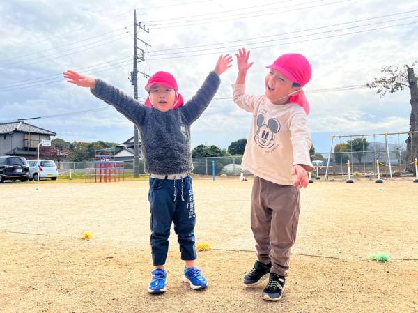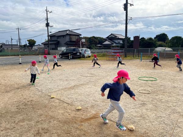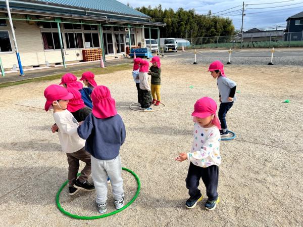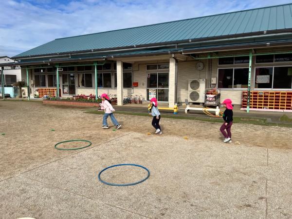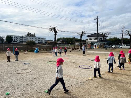椅子取りゲームのフラフープバージョン、『フラフープ取りゲーム』をしました🤗✨ 広い所庭を思い切り走りながら楽しんでいた子どもたち(*^^*)🌈 友達を最後まで応援する優しい気持ちも見られました😊 これから寒くなる日が増えると思いますが、元気に戸外遊びを楽しんで行きたいと思います🌞