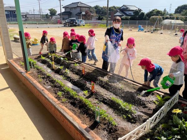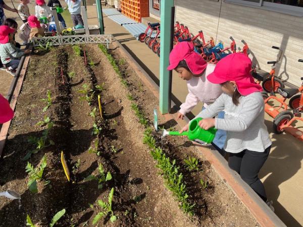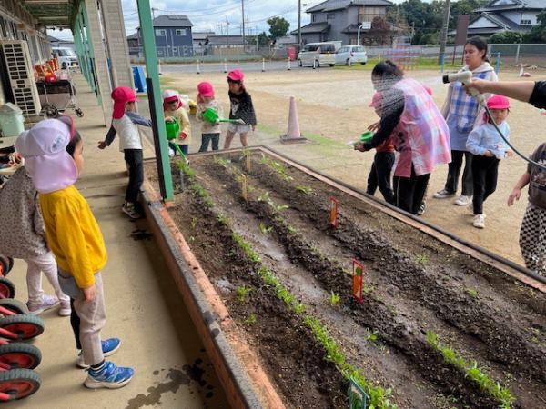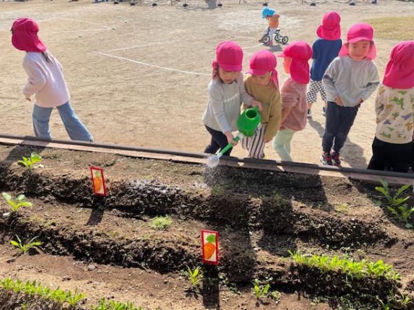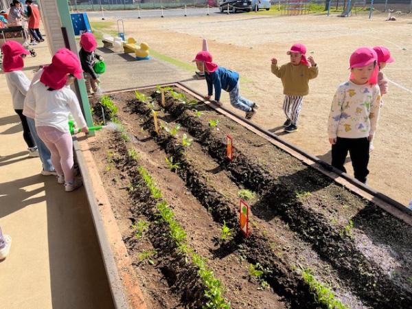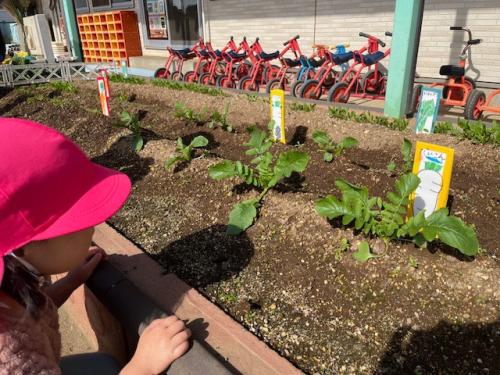 毎日、野菜の生長を楽しみに観察しています🌱種まきをしてからまもなく1か月✨「葉っぱが大きくなったね」「葉っぱの下はどうなっているのかな?もう大根できているのかな」など、気づいたことや感じたことを友達や先生と伝え合いながら観察をしています🥕