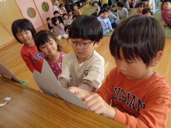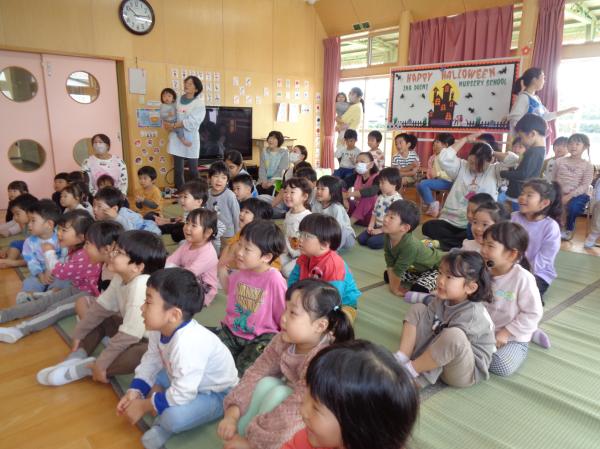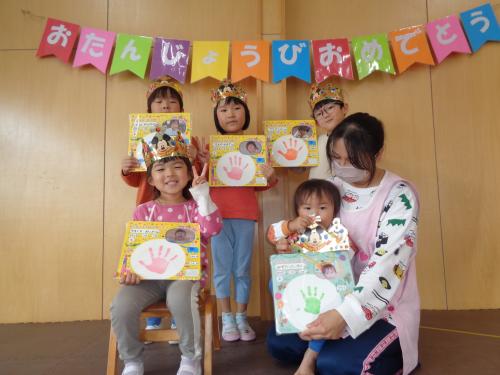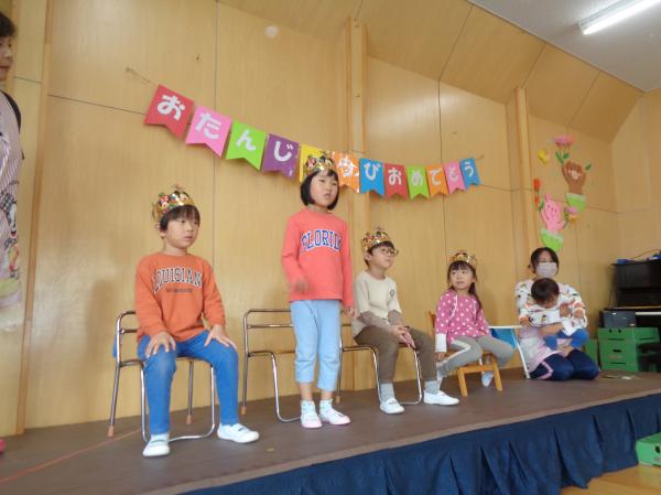 今日は10月生まれのお友達の誕生日会を行いました😊10月生まれのお友達は全クラスで5名!✨みんなにお祝いしてもらい嬉しそうでした💕質問コーナーでは、好きな色、好きな車、新幹線、好きなおもちゃなどの質問がありました。みんな立派に質問をしたり答えたりしていました✨そしてお待ちかねの保育士からの出し物は『秋とハロウィンにちなんだマジックショー🎃』秋の食べ物のクイズやマジックもあり、みんな興味津々で大盛り上がりでした😊とっても楽しい時間を過ごしました⭐