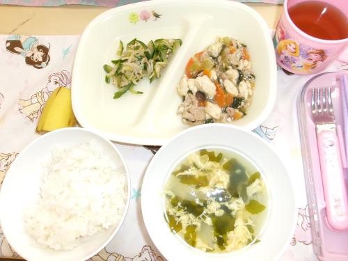 今日の給食は、 ・ご飯 ・豆腐の中華煮 ・もやしとハムのサラダ ・わかめスープ ・バナナ 🍌 でした。 中華煮は、豆腐と豚肉、にんじん🥕、チンゲンサイなどの野菜が入った中華風の煮物で、子どもたちは、おいしそうに食べていました。 ここのところ、気温が下がり、寒くなってきました。寒さ🥶で体調を崩さないように朝、昼、夕の食事🍚をきちんと摂りましょう❣