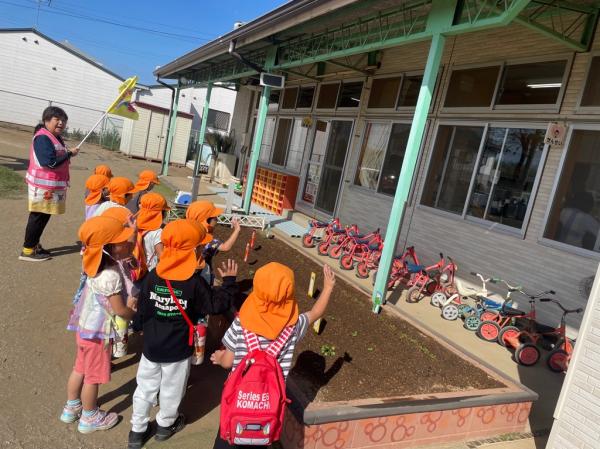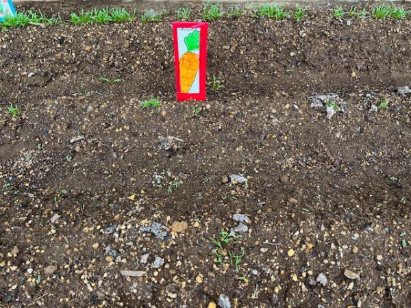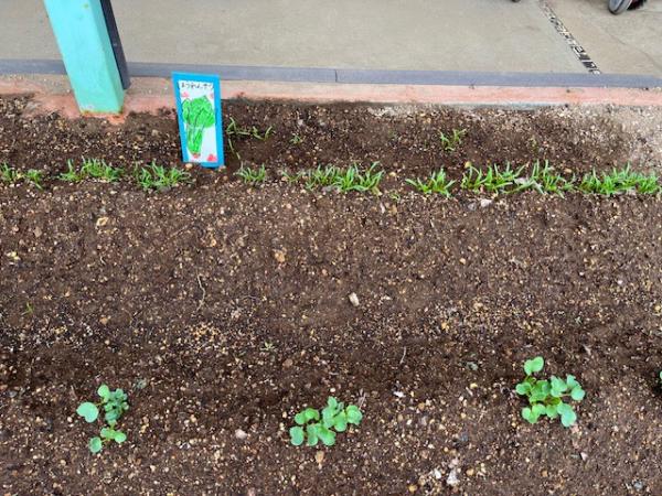 連休明け、畑をのぞいてみると・・・ 人参の芽が出ていました🥕✨ 大根、ほうれん草も先週と比べるとぐんぐん育っています🌱日々の野菜の生長に子どもたちもビックリ!!そして、野菜によって🌱の様子が全く違うので、言葉に出して表現しながら観察を楽しんでいます😊