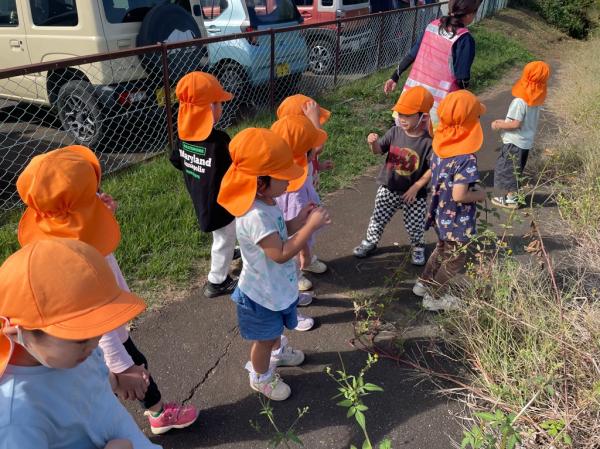 発表会の練習の合間にちょっとお散歩🍁秋を探しに小張小の周りを探索してきまし♬ コスモスや野菜、みかん、それにバッタ🦗などを見つけて大興奮!!見つけると嬉しそうにお友達や先生に教えていました☆ 今度はまた違うコースで秋を見つける探検に行きたいと思います😊