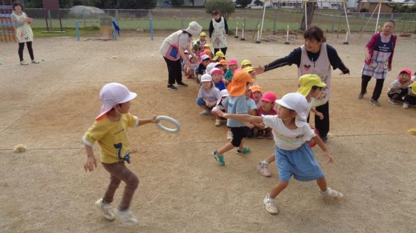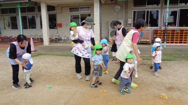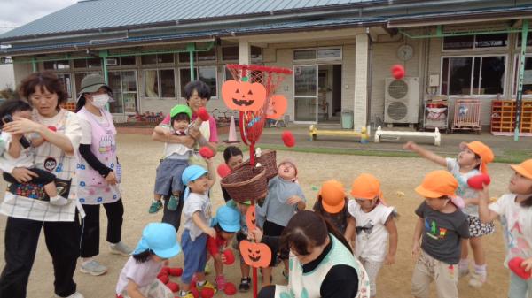アップテンポな曲ですが、みんな笑顔で楽しく踊っていました♬その後は、かぼちゃチーム🎃とおばけチーム👻に分かれて宝探し・玉入れ・リレーで対決⚡力を合わせて頑張りました!全クラスでゲームに参加することを楽しむ姿が見られたので、また機会を作っていきたいと思います🎵