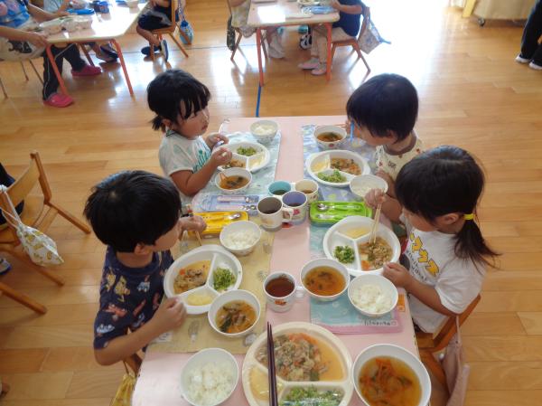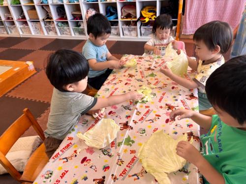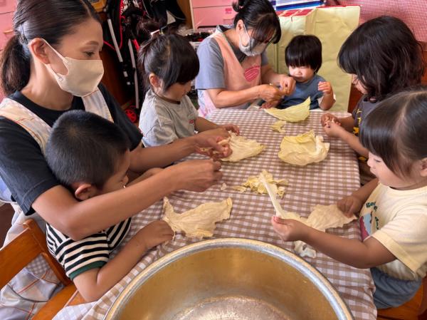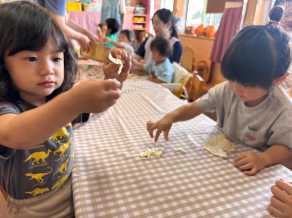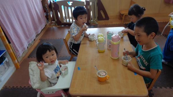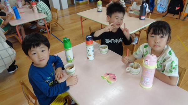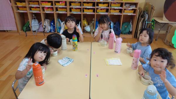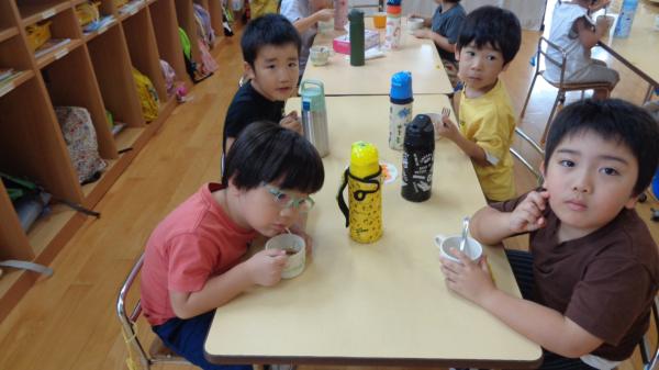 そして今日のおやつは縦割りで、他のクラスに行ったり他のクラスの友達が部屋に来たりしました🤗いつもと違う雰囲気に、とっても嬉しそうな子どもたちでした💓