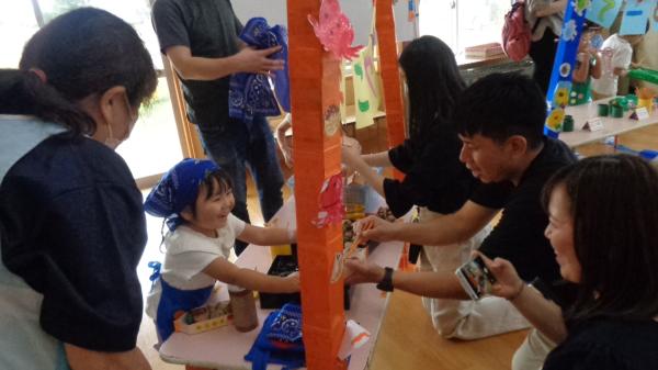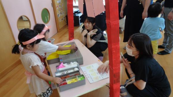 うさぎ組の保育参観を行いました🐰体操・英語教室・お店屋さんごっこ・給食と盛りだくさん✨英語教室は、ちょっぴり緊張気味でしたが元気に歌っていましたね♬ お店屋さんごっこでは、お家の方と一緒に店員やお客さんになって楽しく遊びました🌈ずっと前から楽しみにしていたので、とびきりの笑顔でしたね😊給食も、ほぼ完食🥢お家の方にかっこいい姿を観てもらえて嬉しそうでした♡ お忙しい中、ご参加いただき、ありがとうございました♡