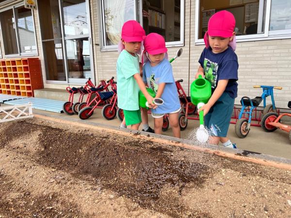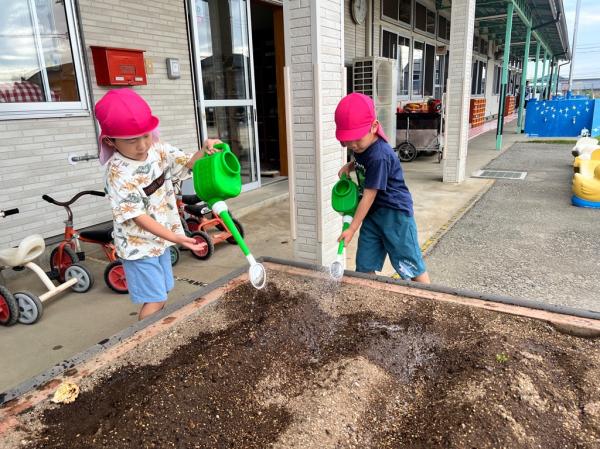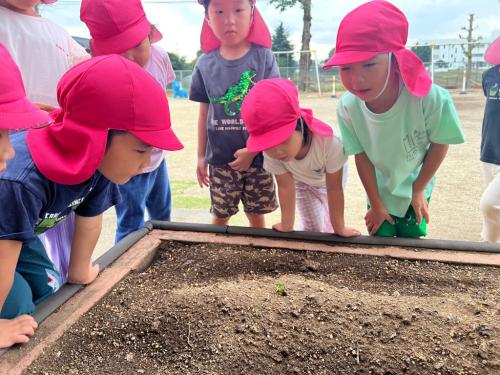 「先生!大根の芽が出てたよ!」と、登所してすぐ教えてくれた友達がいました🌱 みんなで見に行くと…本当に芽が出ているではありませんか!!✨ 小さなかわいい芽が3つ、顔を出していました😊 こんなに早く芽が出たことに驚きながら、とっても嬉しそうな子どもたち🎵 じっくり観察し水もたっぷりあげました🚿 次はどの野菜が芽を出すかな🌱?みんなで楽しみに待っています♡ その後は、クリーンデーや大縄跳びをしました🤗🌈
