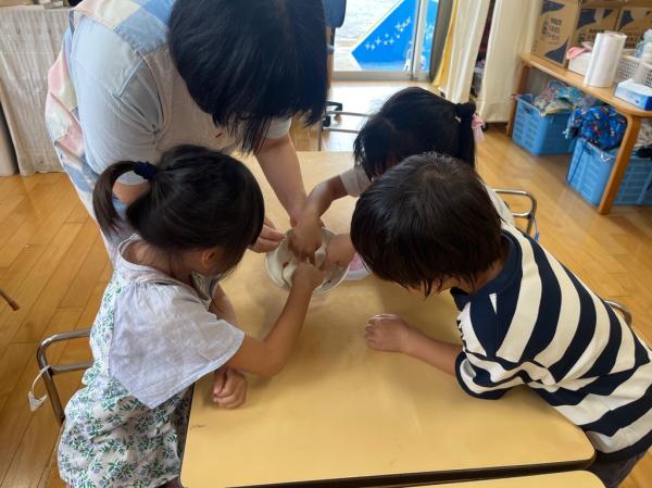 今日は十五夜の日🌕✨ 管理栄養士の先生から十五夜についてお話がありました😊 子ども達は「十五夜さん」という歌は歌っているけど・・・。みんなの顔に❓がありました🤔(こんな感じでした。笑) 十五夜の絵本を読んでもらい、十五夜とは一年の豊作に感謝する行事であり、月見団子は、月の神様へのお供え物と教えてもらいました!! みんなでお団子作りにも挑戦し🍡今夜お月様が見えるようにお願いをしました💖 【参考図書】 『こども きせつのぎょうじ絵じてん』 三省堂編修所・編