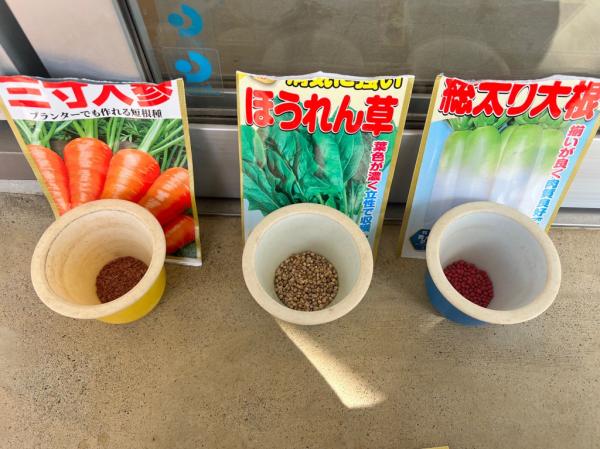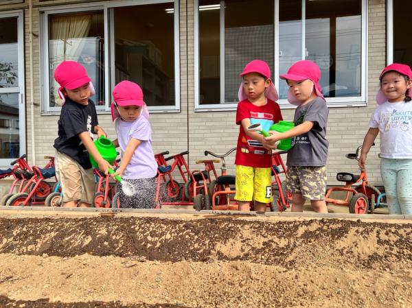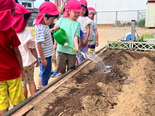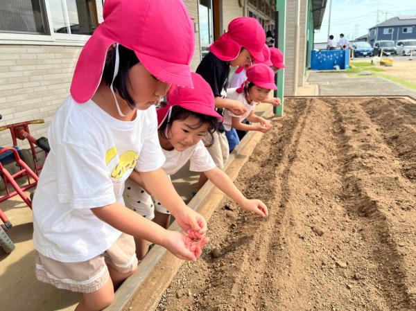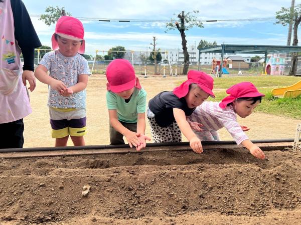夏野菜の栽培が終わった花壇に、冬野菜の種を蒔きました🌱 みんなでどんな野菜を育てたいか話し合い、だいこん・にんじん・ほうれん草に決定しました😊🌈 小さな種を優しく丁寧に蒔き、最後に「早く大きくなってね♬」と願いを込めながら水やりもしました🚿✨ 冬野菜の生長を観察しながら、みんなで大切に育てていきたいと思います🥕🌞