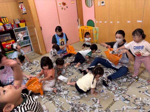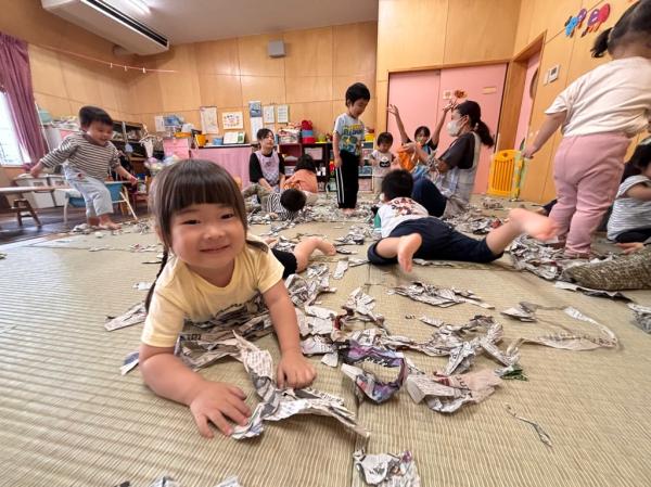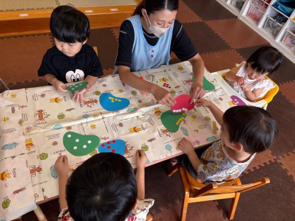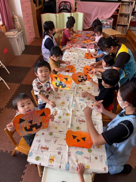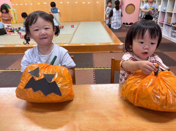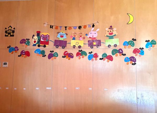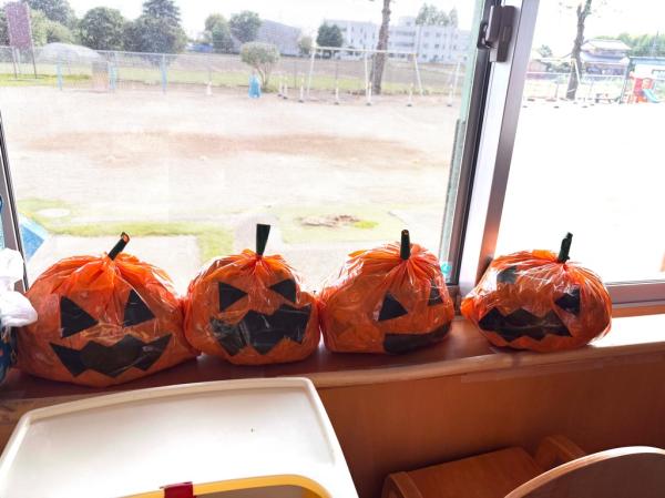 最近、朝夕は少しずつ涼しくなり、秋らしくなってきました🍂10月に入り、りす組の部屋も模様替えしました✨みんなで制作をして壁面がハロウィンバージョンに変わりました😊カラフルなきのこも周りにたくさんはえています🍄また、遊んだ後の新聞紙が、かぼちゃおばけに変身しました!4個のかぼちゃたちがお部屋にいるので探してみてください👀🎃🎃🎃🎃