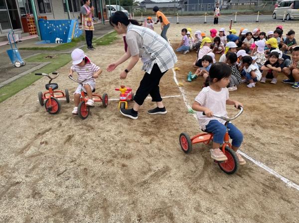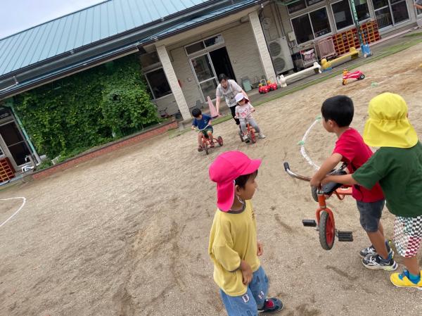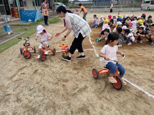 今日は、いつものリレーからバージョンアップ✨サーキットリレーをしました🚗三輪車やトイカーをこいだり、両足ジャンプをしたり、縄跳びのトンネルをくぐったりしました♬初めての遊びでしたが、みんな真剣な表情で参加し、お友達の応援も頑張っていました🚩 またみんなで、いろいろな遊びを楽しみたいと思います😊