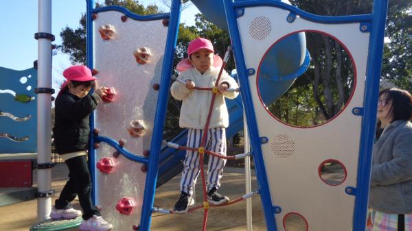今日は待ちに待った園外保育の日🎵天気にも恵まれ、ウキウキででバスに乗り込んだ子ども達💓 公園に到着すると、大きなアスレチックに目を輝かせながら好きな遊具へ一直線🏃✨友達と関わり合いながら 伸び伸びと遊ぶ姿が見られました!他にも、長いローラー滑り台やどんぐり拾いなどをして充実した時間を過ごすことができました😊!お家でも、思い出話を聞いてみてくださいね🎵