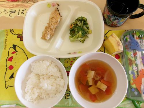 今日の給食は、 🔹ご飯 🔹たらのごまマヨネーズ焼き 🔹野菜の梅和え 🔹けんちん汁 🔹バナナ 🍌でした。 たらは、冬が旬の魚🐟です。焼いたり、鍋ものに入れたり色々な料理にあいます。今日は、たらにマヨネーズとしょうゆで下味をつけて、ごまをふりかけて焼きました。子どもたちからは「マヨネーズ焼きおいしい~💕」の声があがり、おいしそうに食べていました✨