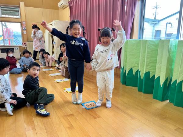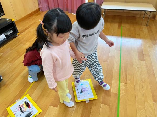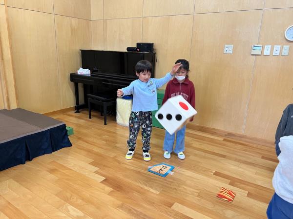 凧揚げやコマ回しなど、正月遊びを楽しんでいる、ぱんだ組の子ども達🤗「他にどんなお正月遊びがしたい?」と尋ねると「すごろくがやりたい🌟」ということだったので、みんなですごろくを作って遊びました🎵 いろいろなミッションをクリアしながら、ゴールを目指しました💓自分が描いた絵がマスになっていることも喜んでいたぱんだ組さんです🐼✨また、チームやマスを入れ替えながら楽しみたいと思います😆