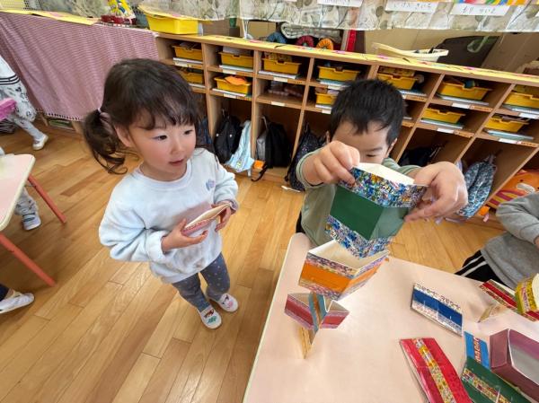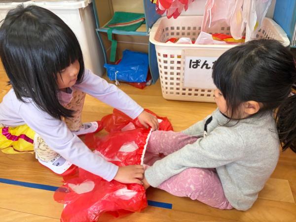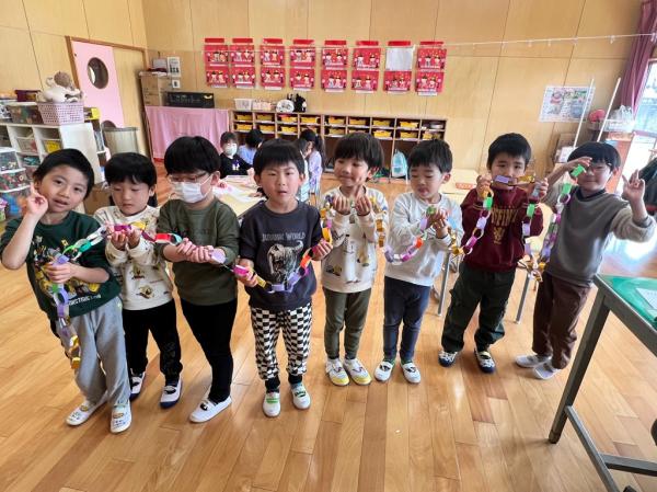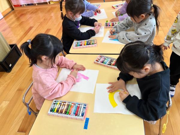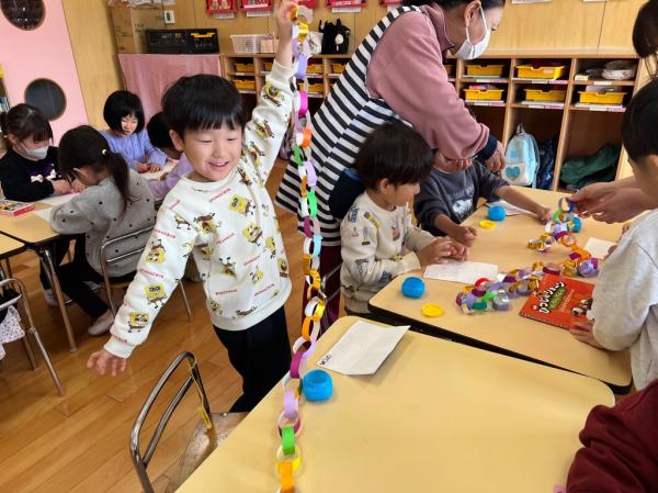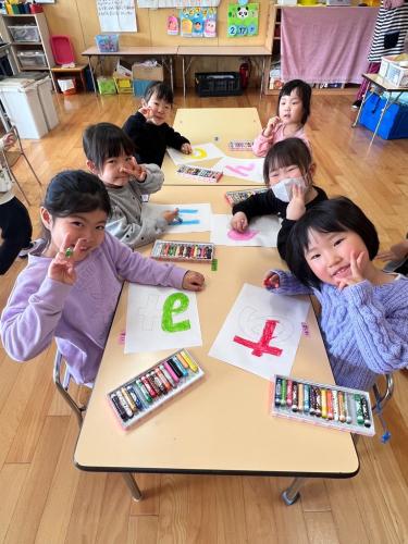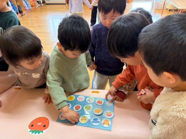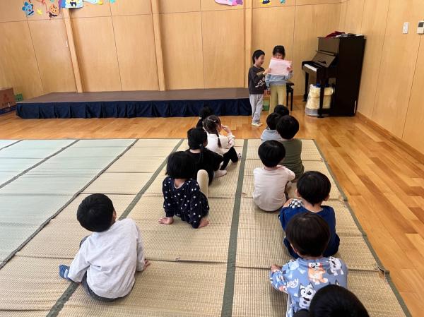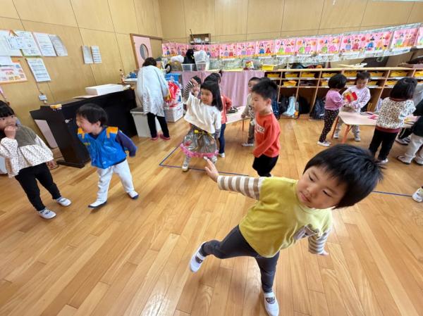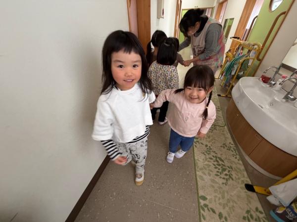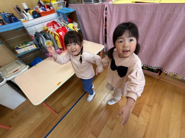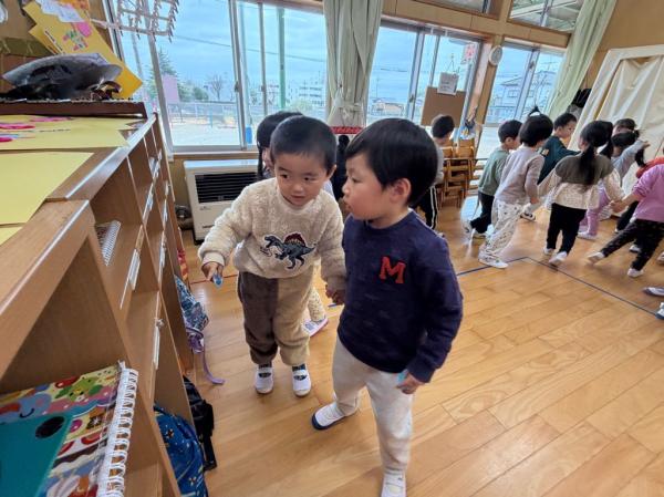 今日は宝探しゲームもしました✨「ここじゃない❓」「あったよ!」と協力して色々な場所を探しながら宝(色々なイラスト)を見つけていました💎👀りす組さんに遊び方を教えたり、見つけた宝を譲って渡してあげたりと、うさぎ組さんの優しいお兄さんやお姉さんの姿も見られました💓そんなうさぎ組さんと遊べて、ニコニコ笑顔で嬉しそうなりす組さんでした😆♫