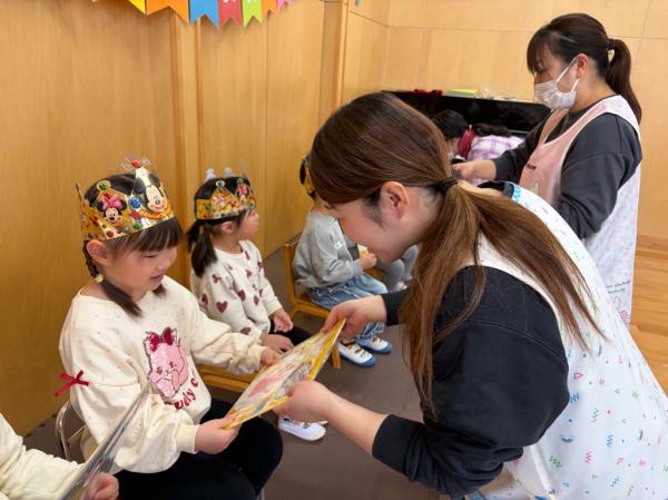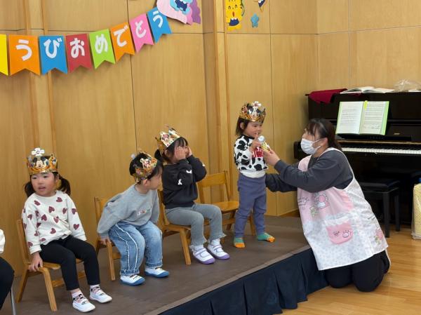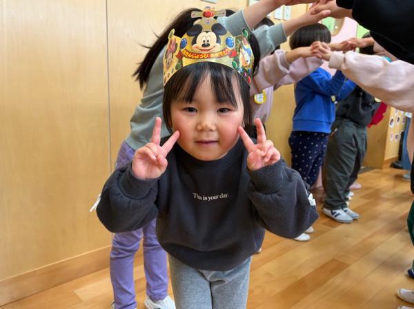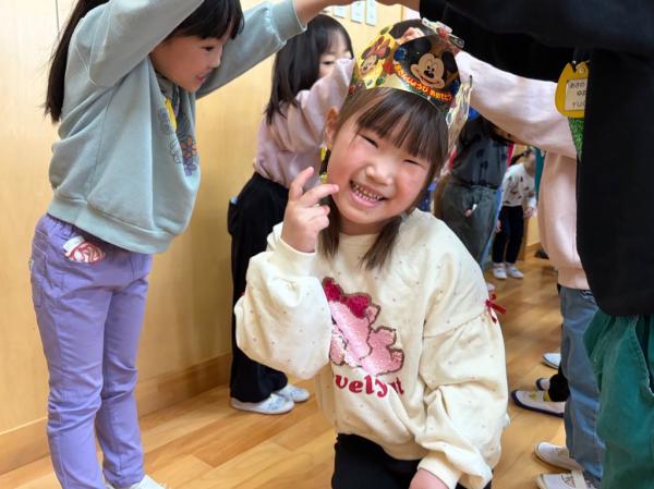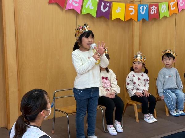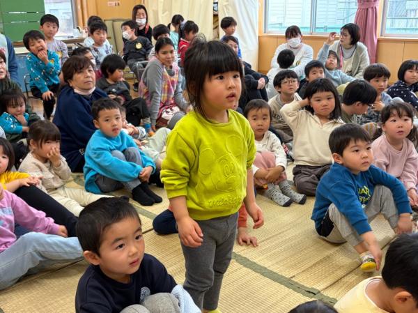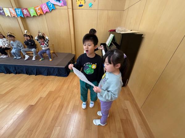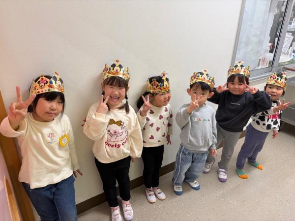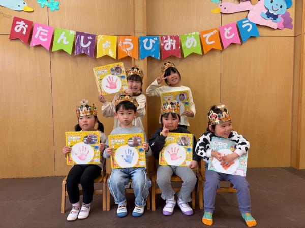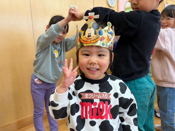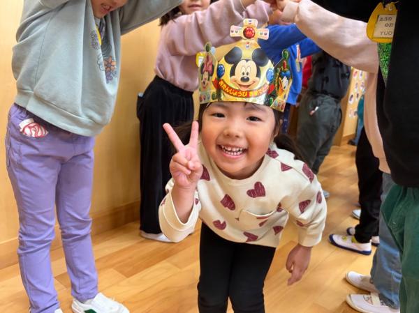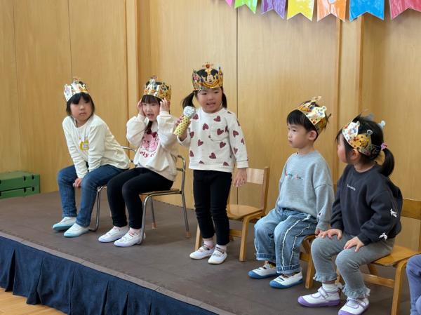 今日は2月の誕生会🎂✨誕生児のお友達は6人でした😊質問コーナーではみんなからたくさん手が上がり「どんな恐竜が好きですか?」「好きな電車はなんですか?」といろいろな質問がありました。また、ALTの先生からも「What is your favorite Disney characters?」と質問が!!みんな、いろいろ考えてドナルド!デイジー!!など答えていました。