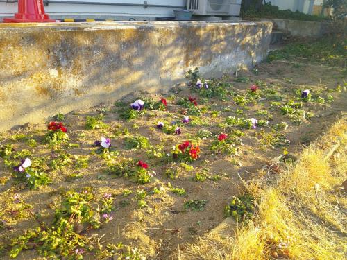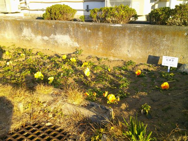 校舎前の花壇の花がきれいに咲きました。 環境メディア委員会の活動で水かけをしています。