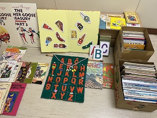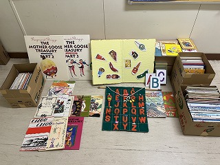 そのような中、情報を聞きつけた市内在住の地域の方が、素敵なプレゼントを寄贈くださいました。英語に関わるお仕事をしておられたようで、つかっていたもので良ければ…と、たくさんの英語の絵本やアルファベットかるた等をいただきました。本当に素敵なものばかりです。環境整えていく中で、絵本やおもちゃは値段も高く、たくさんそろえることができないので、ありがたい限りです。本当にありがとうございました。